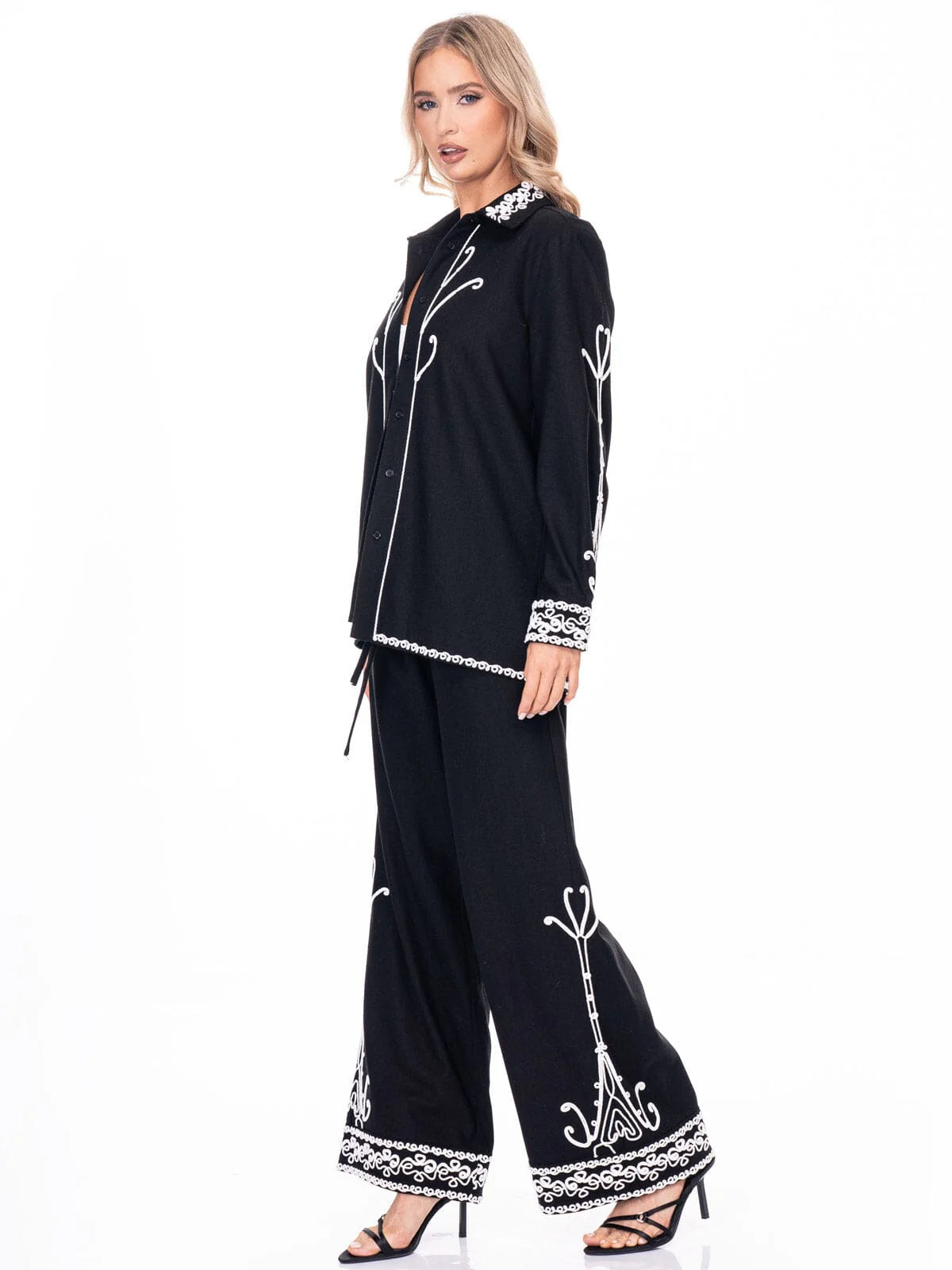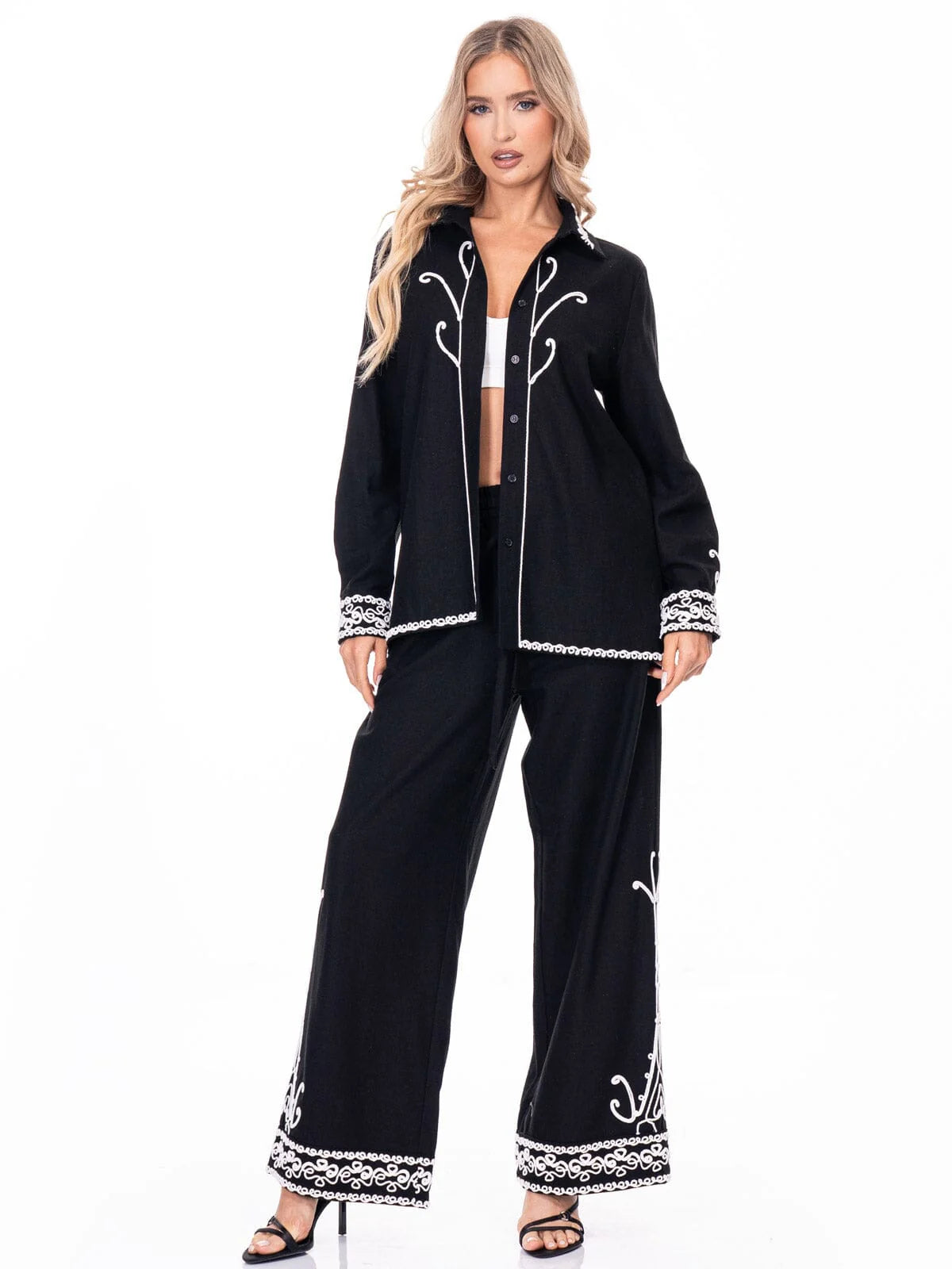 BUTTON UP EMBROIDERY LINEN TOP