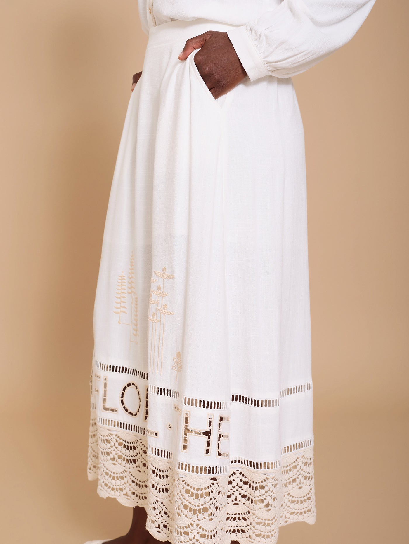 Falda midi con bordado troquelado