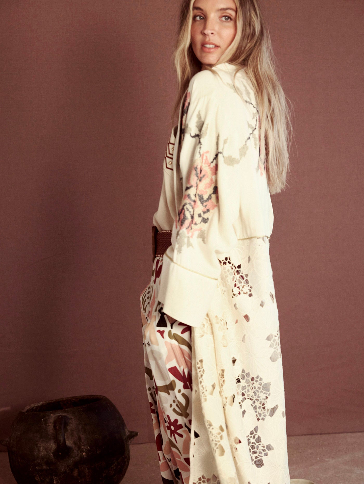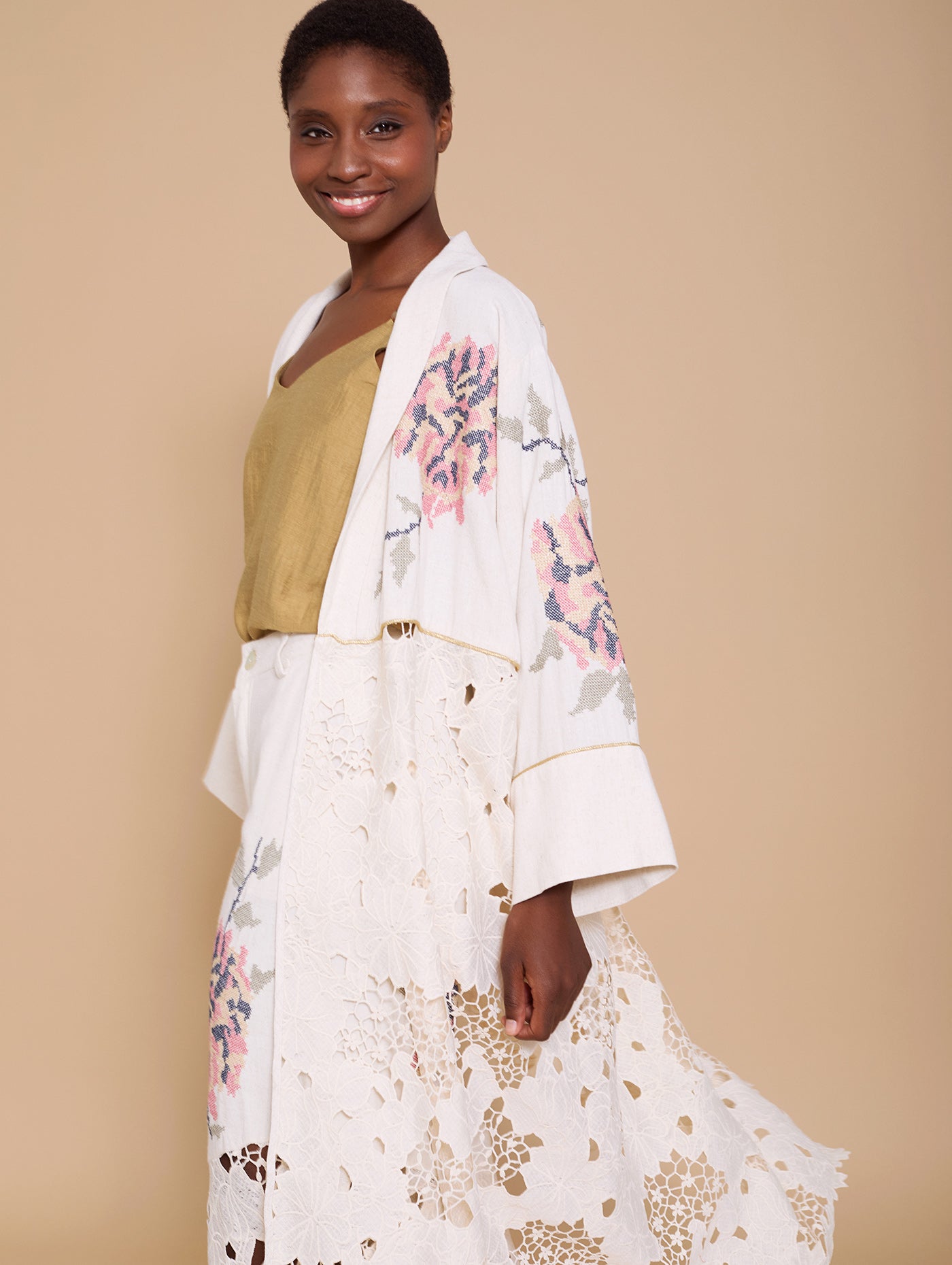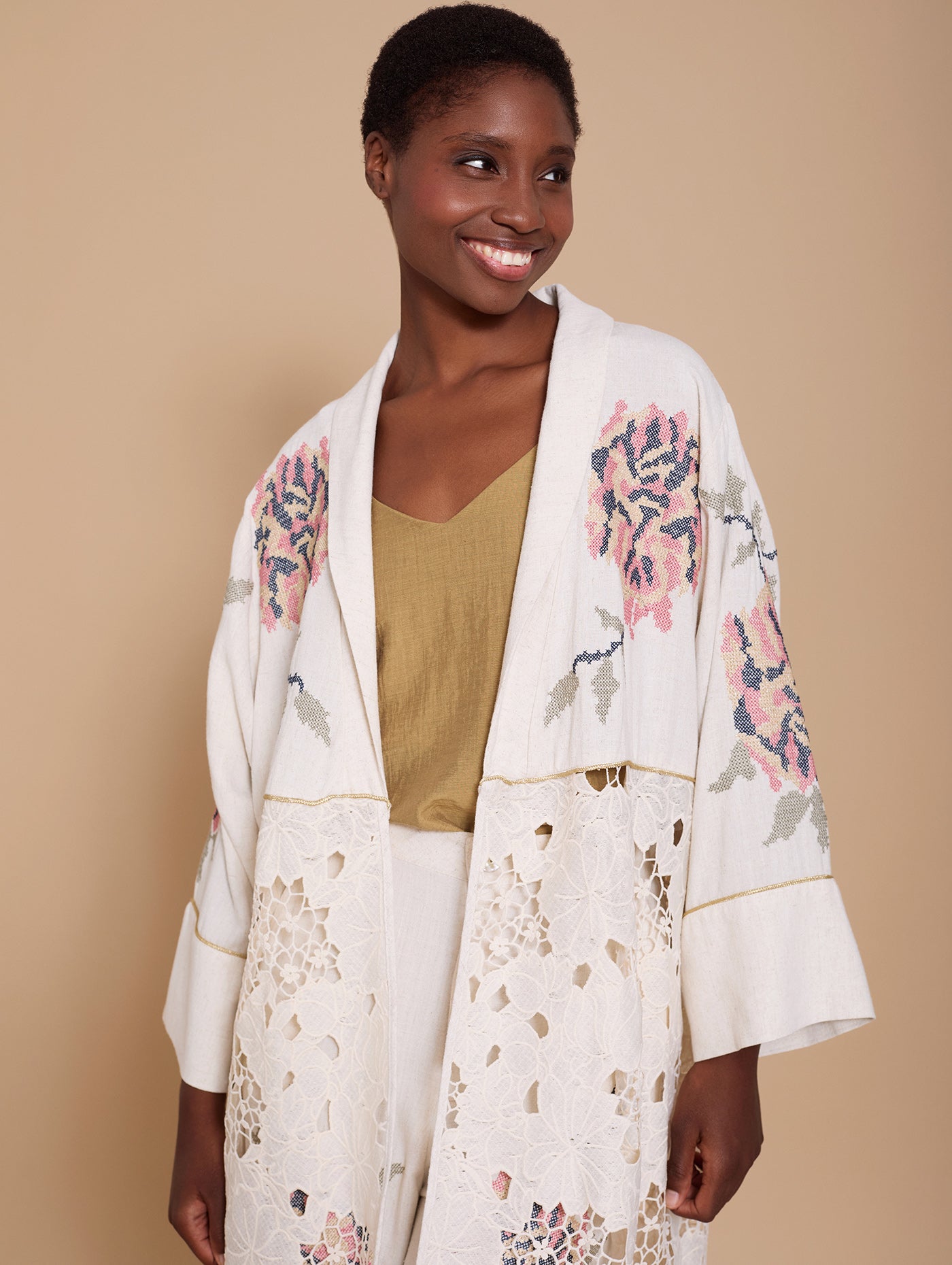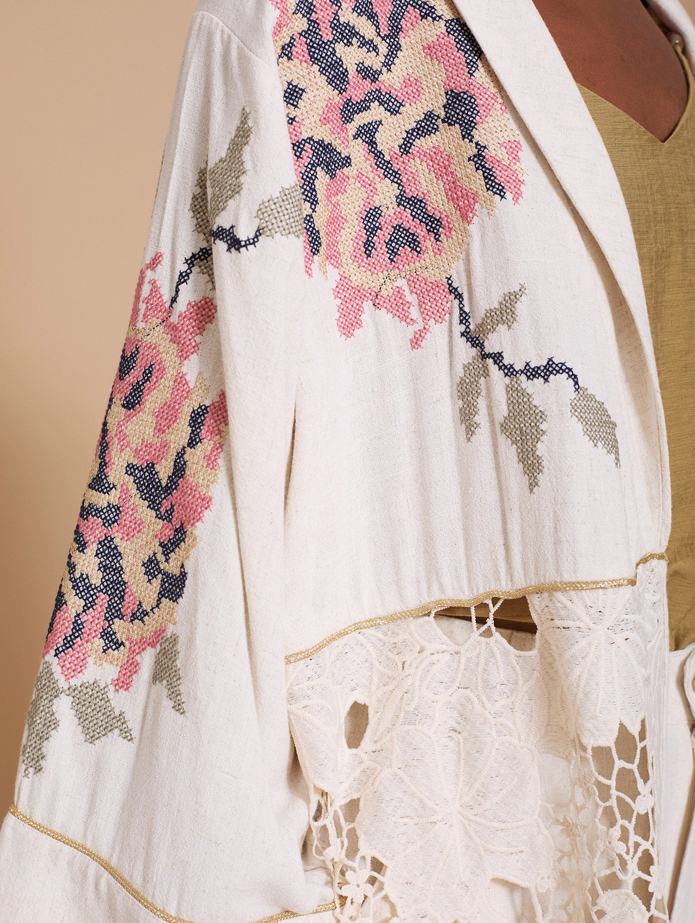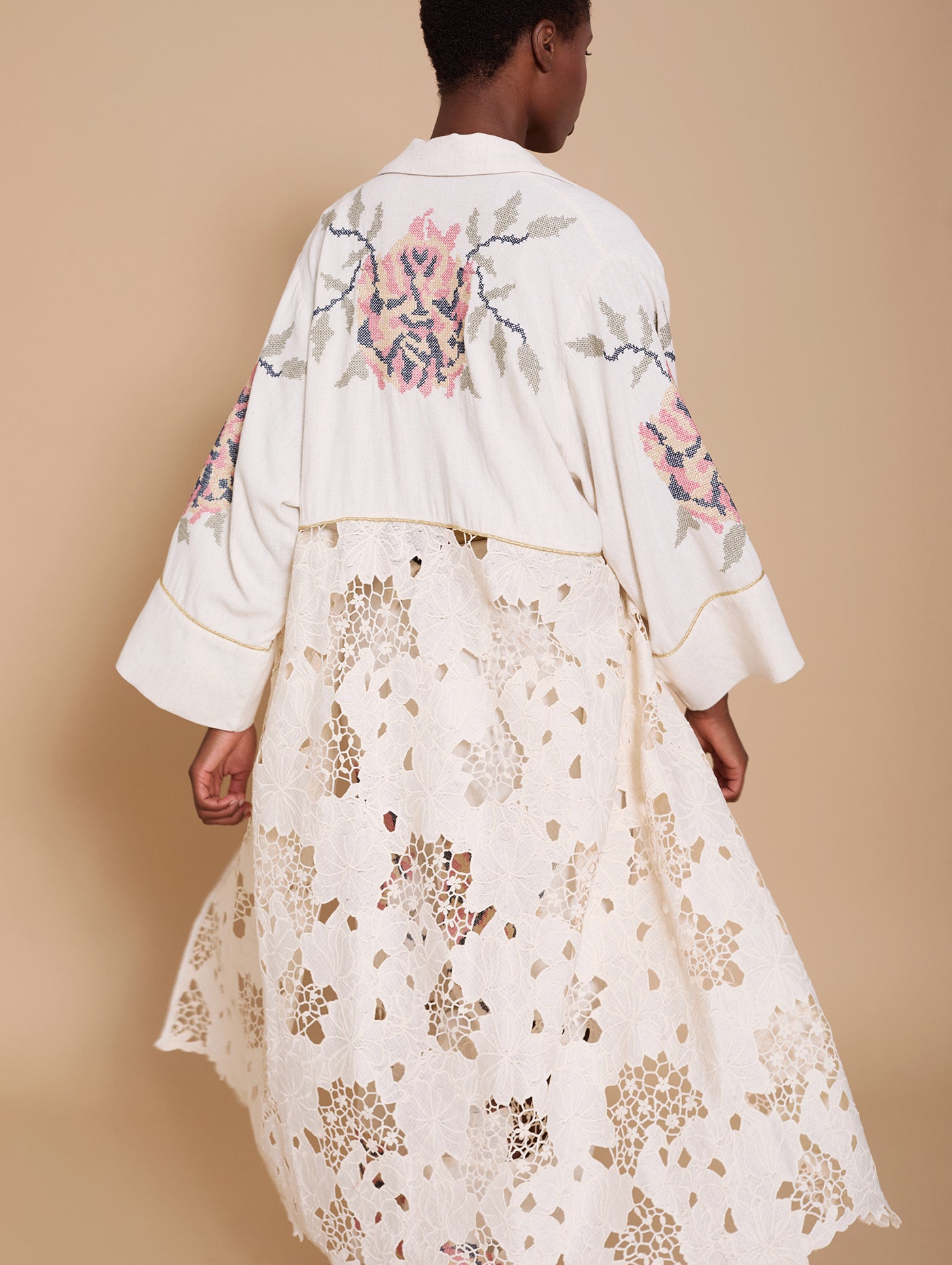 Kaftan bimateria en encaje y bordado
