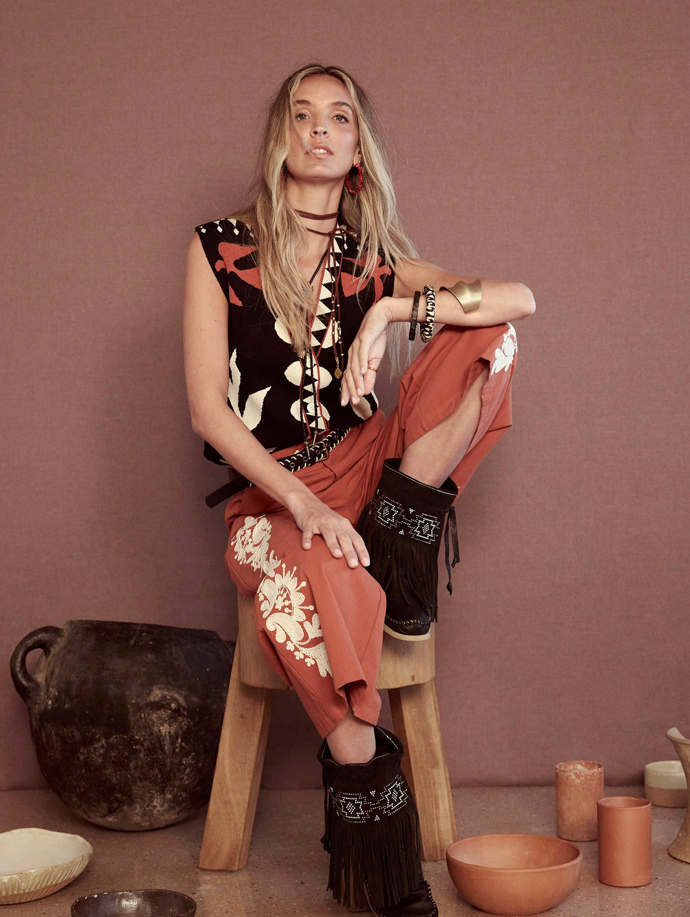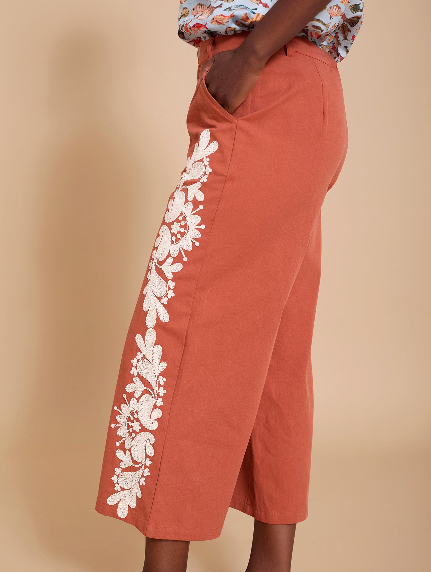 Pantalón cropped con bordado lateral